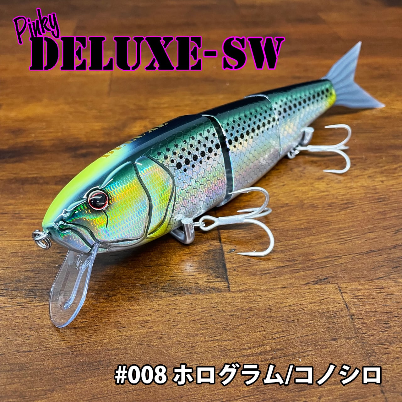 ピンキーデラックスはトリプルデラックスをサイズダウンさせて、アクションはそのままに!今回は取り換え可能リップを付ける事でクランク系スイムベイトにも変化させることが出来ます。